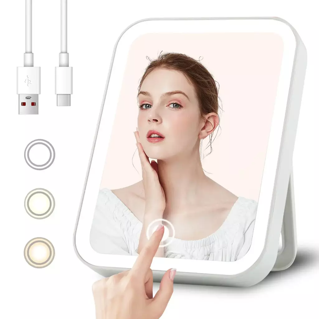 Abra o espelho em uma superfície plana, toque no botão para acender a luz e escolha a temperatura ideal para o ambiente. Ajuste o brilho conforme necessário e aproveite a imagem nítida para sua maquiagem ou cuidados diários. Após o uso, feche e guarde com segurança.